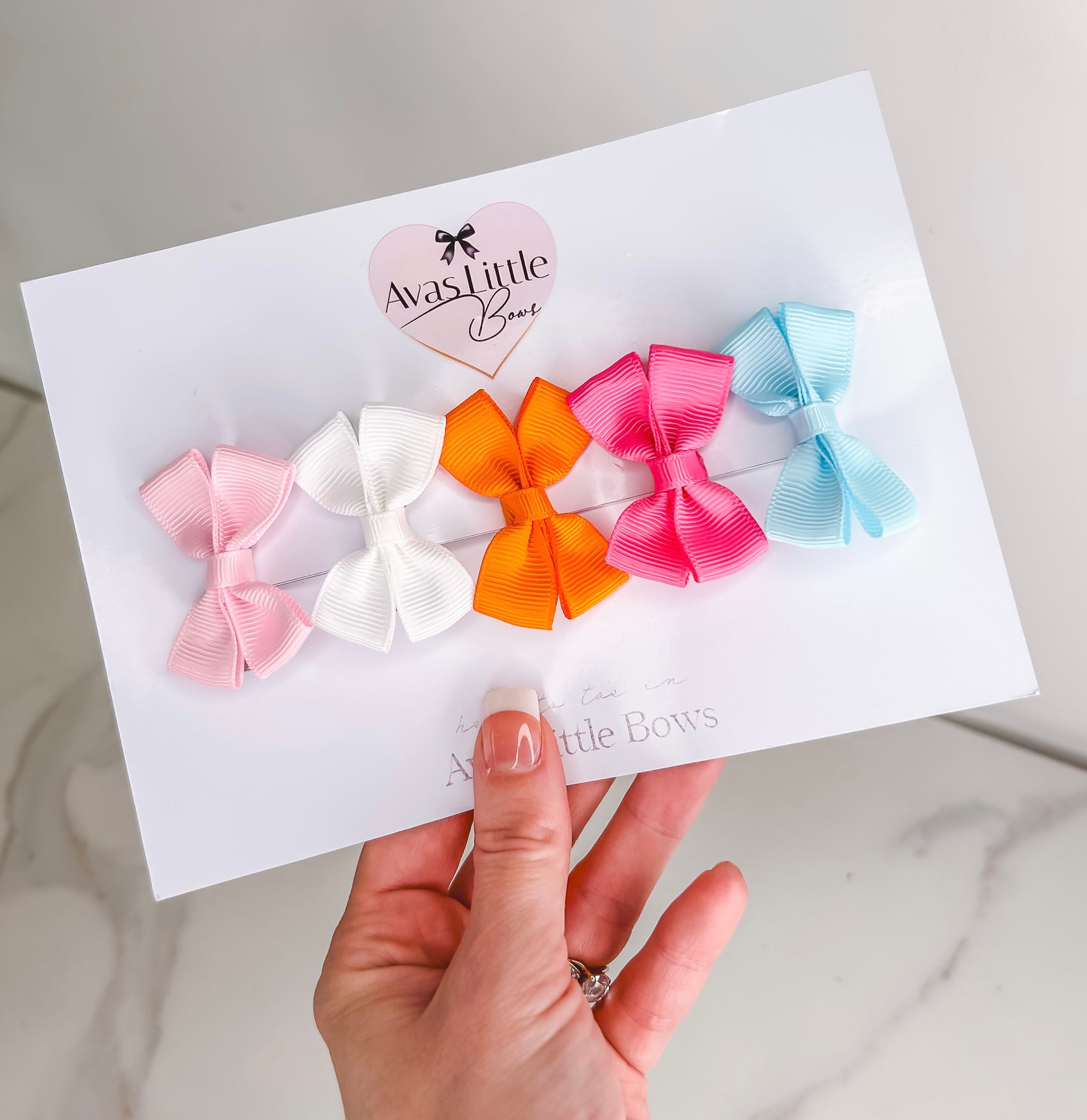 The perfect accessory for your little ones summer wardrobe, This set includes 5 adorable bow clips suitable for children ages 12 months and older.