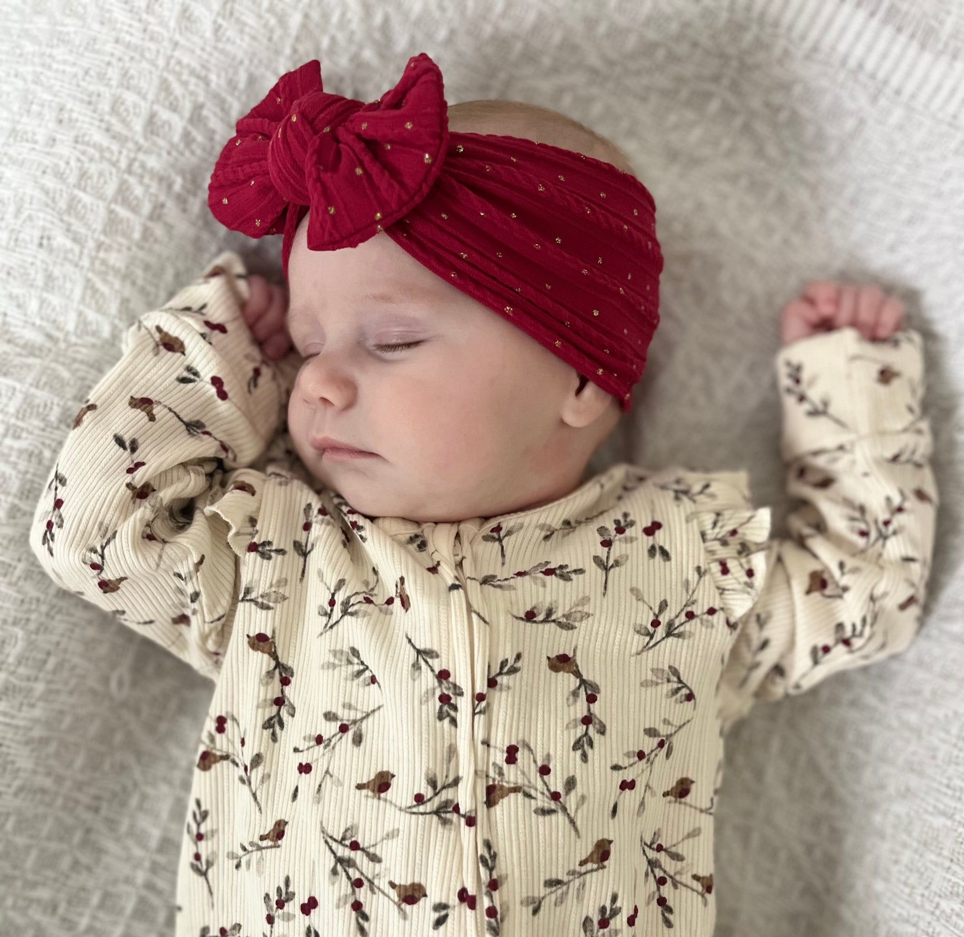 Our bow headbands are one size, Suitable from newborn baby and onwards.