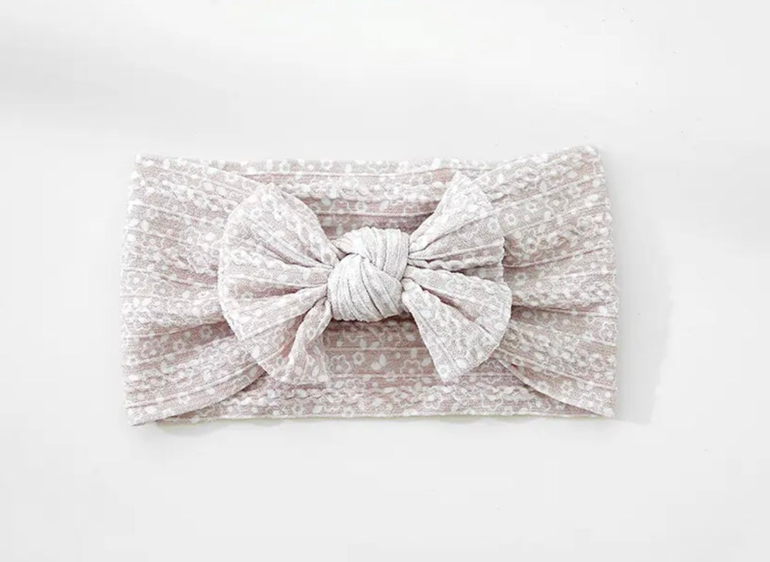 Cable knit bow headband- Pearl floral