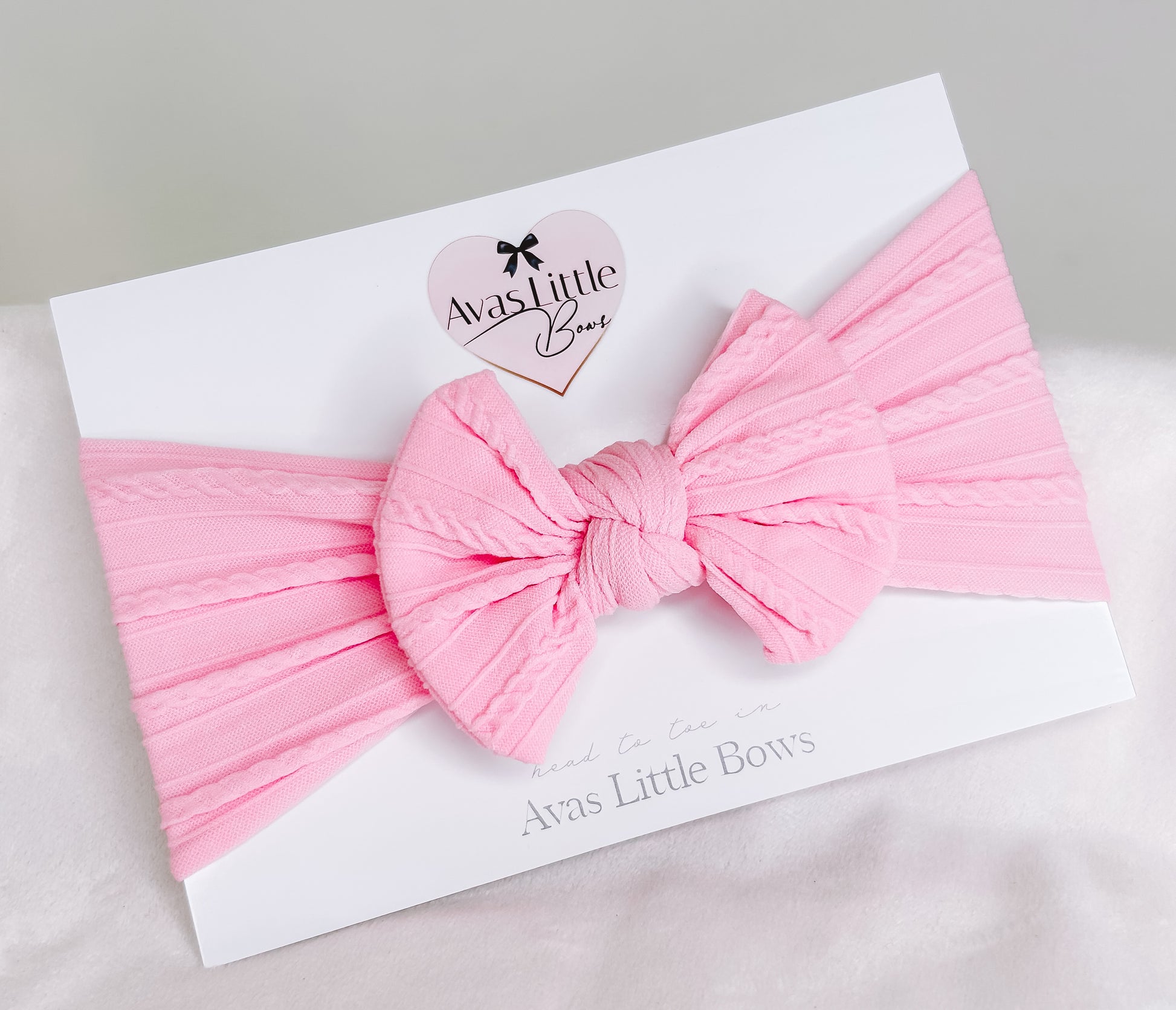 Cable knit bow headband- Pink sugar