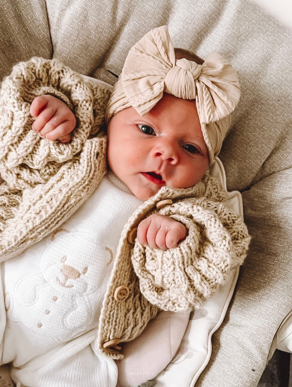 Cable knit bow headband - Sand