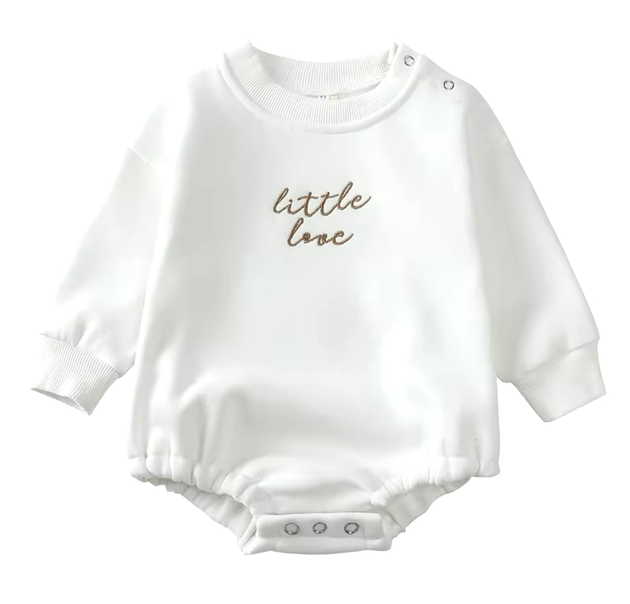Keep your little love cosy and warm this season with our little love fleece lined romper.