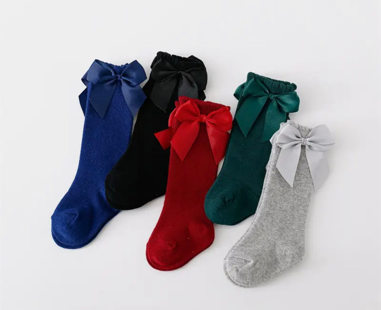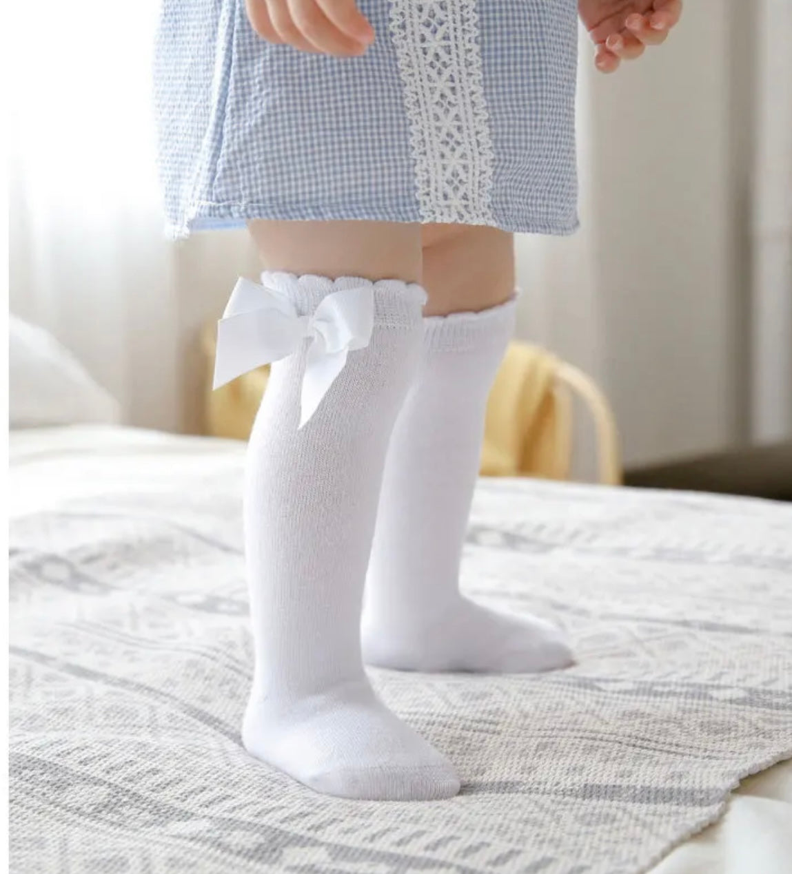 These knee high bow socks are the perfect accessory to pair with your little ones outfits all year round, Ensuring a comfortable fit from approximately 5-24 months.
