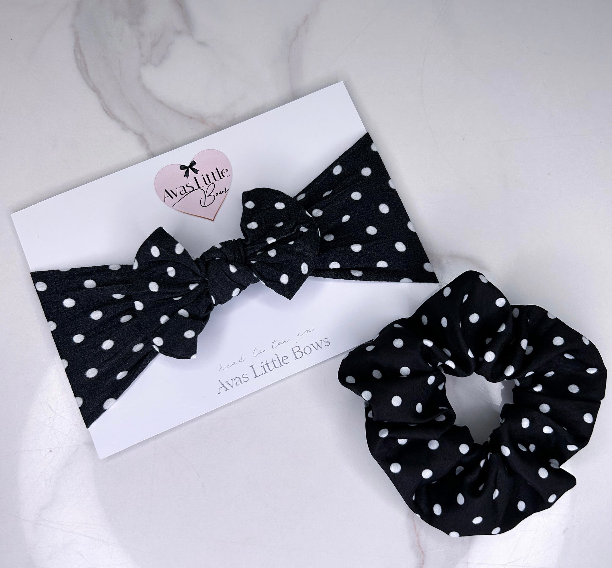 Match with your mini me in our gorgeous bow headband and scrunchy set.
