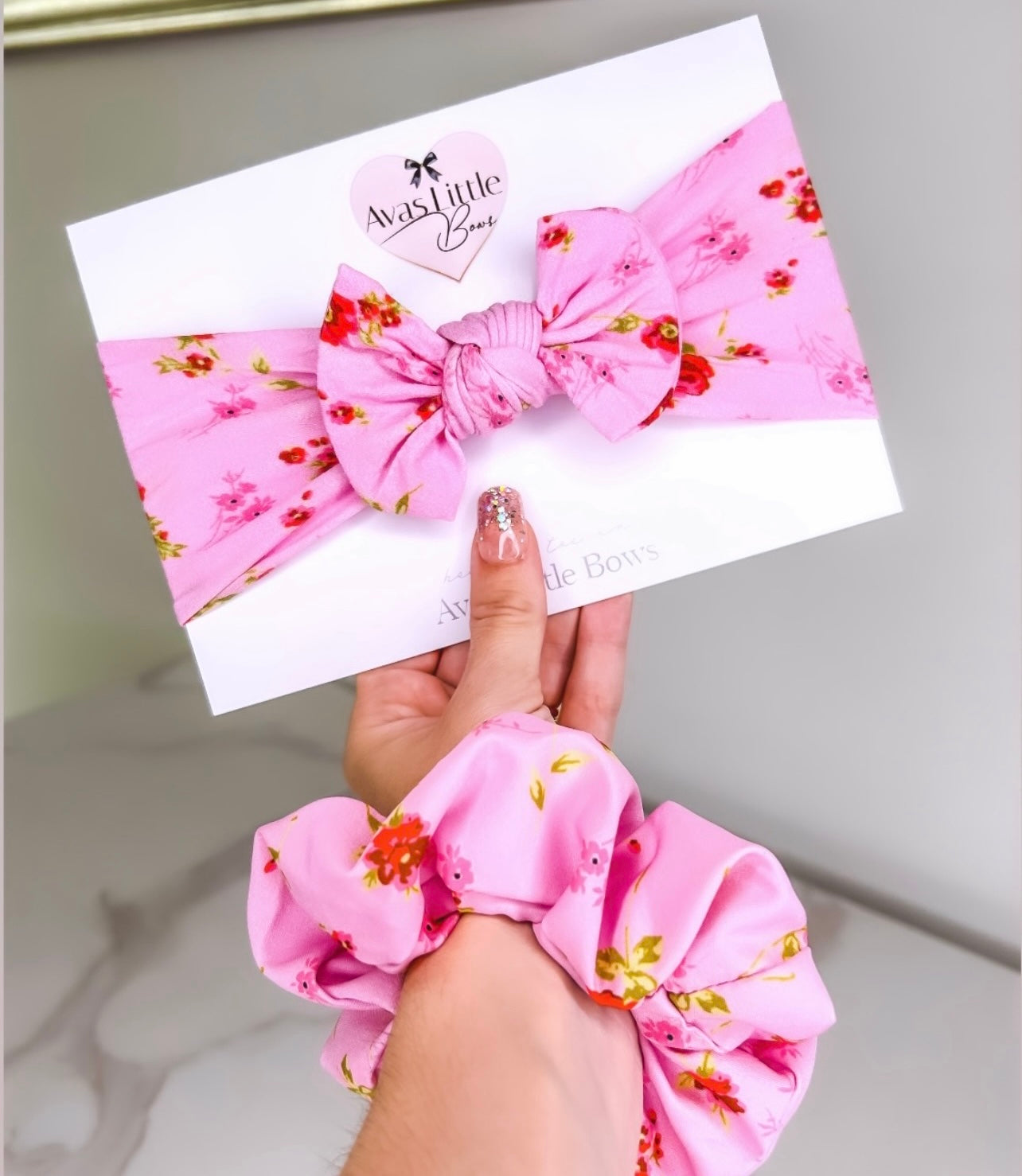 Match with your mini me in our gorgeous bow headband and scrunchy set.