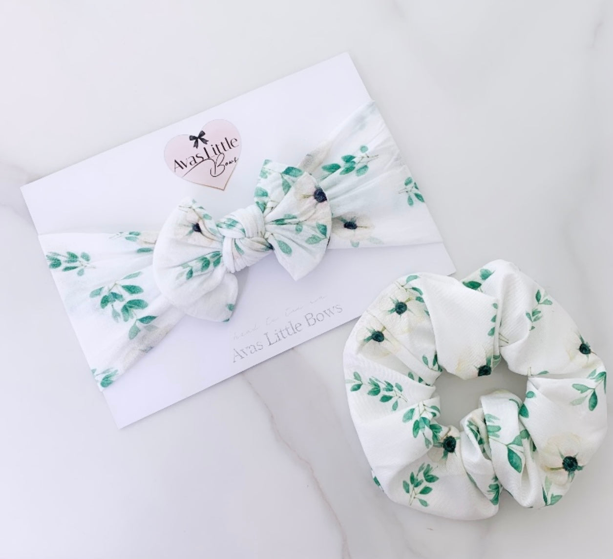 Match with your mini me in our gorgeous bow headband and scrunchy set.