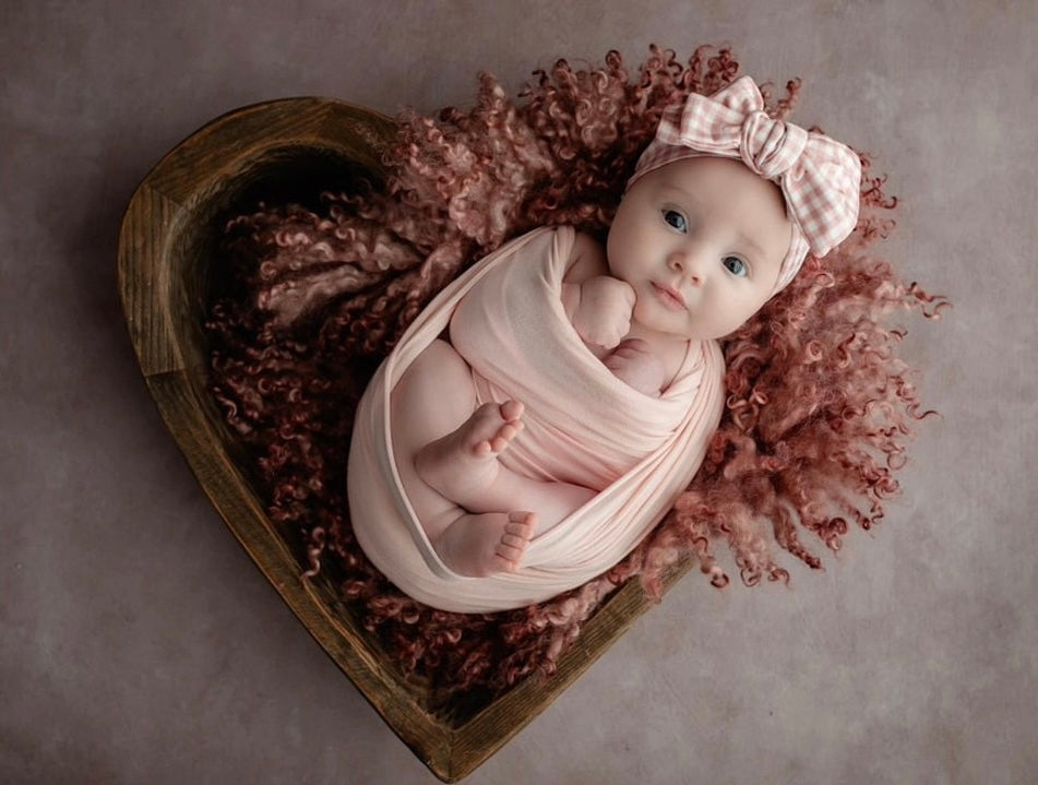 Our pink and white gingham bow headband is suitable from newborn baby to 12 months old.
