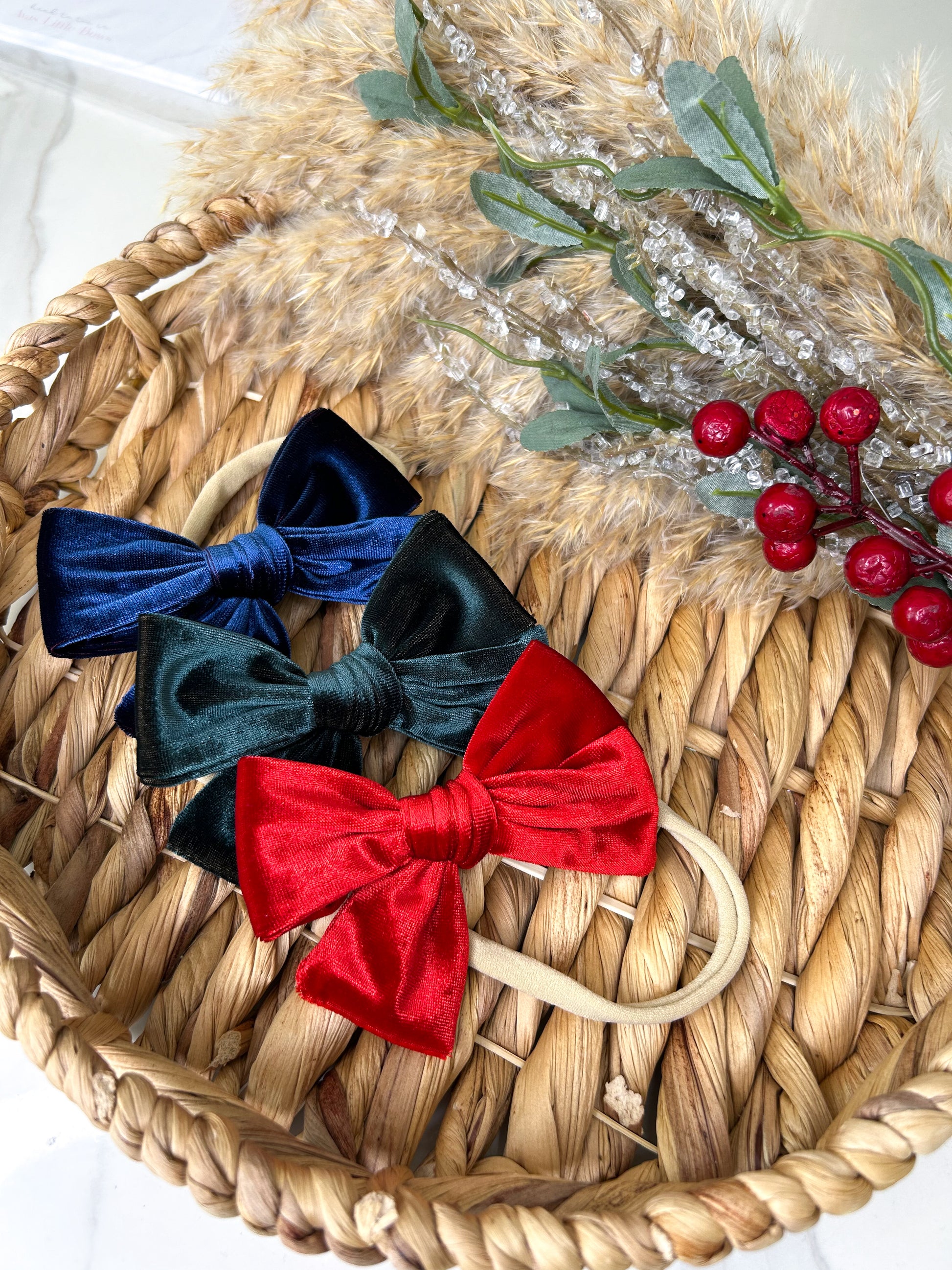 Velvet dainty bow headbands available in three gorgeous festive colours.